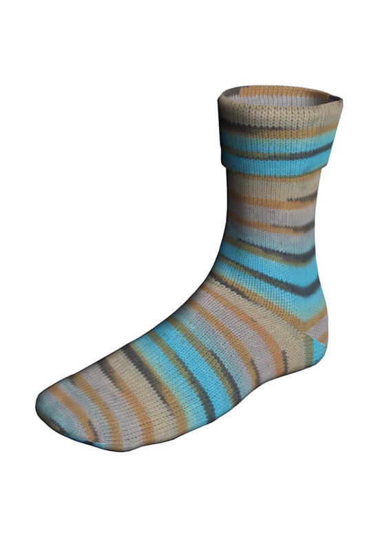 Langyarns Super Soxx color 4 ply 0522Langyarns Super Soxx 4 ply color,75% wol en 25% polyamide in verloopkleuren. Bol 100 g ca. 420 m voor naalddikte 2,5-3,5 mm. Kleur: geel, grijs, aqua, lichtblauw